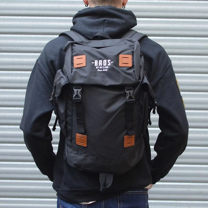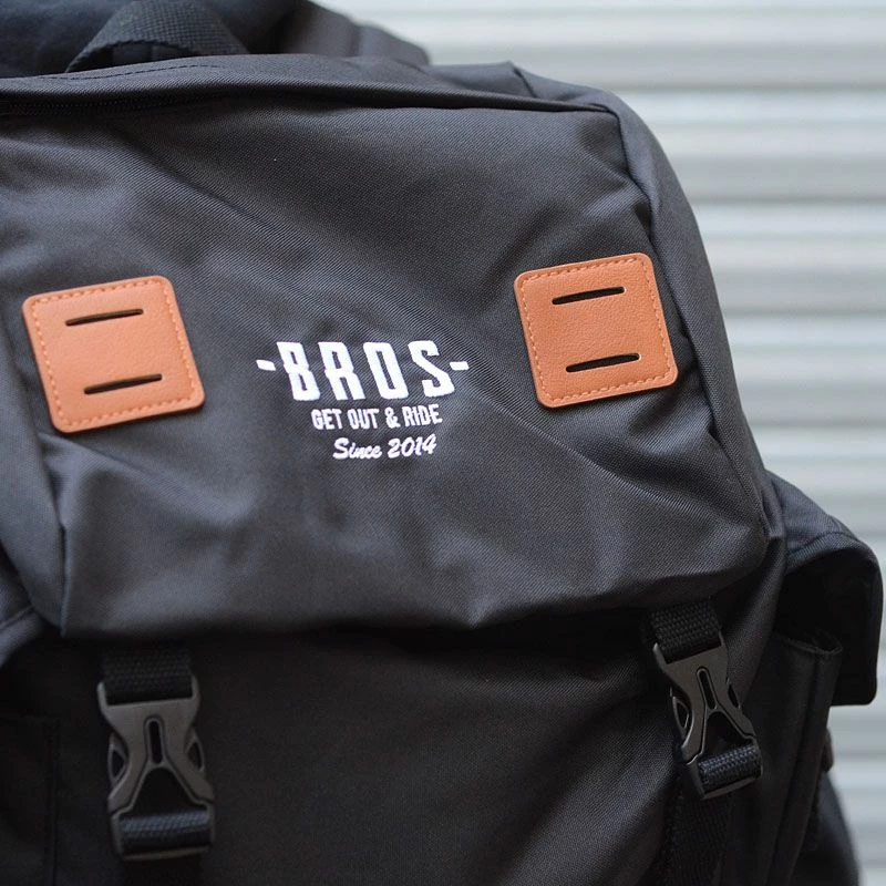 Retour du sac à dos Traveler. Logo BROS brodé sur la poche supérieur. Grande contenance avec sa poche façon « voleur » ouverte par le dessus. 27 litres de capacité pour partir sereinement.