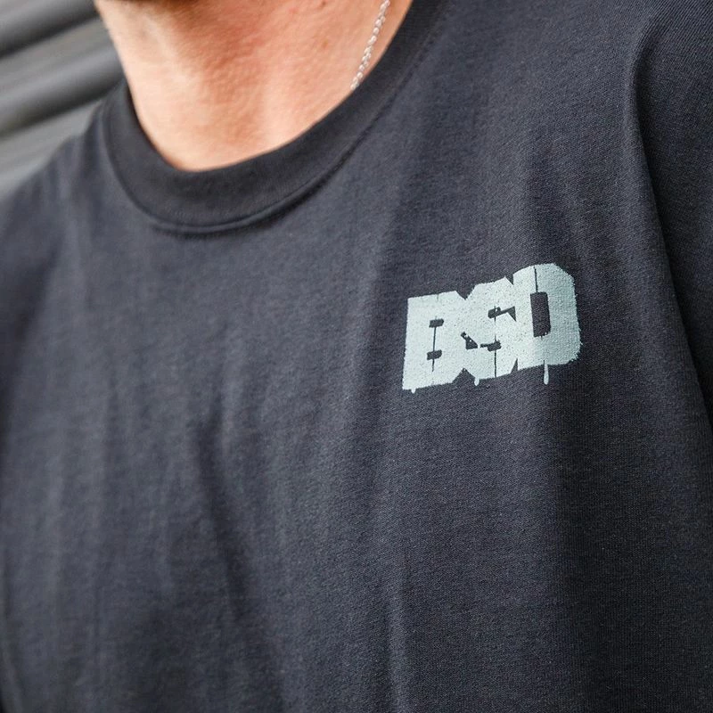Le tee-shirt BSD « Graf » reprend quelques logo iconique de la marque.Â
